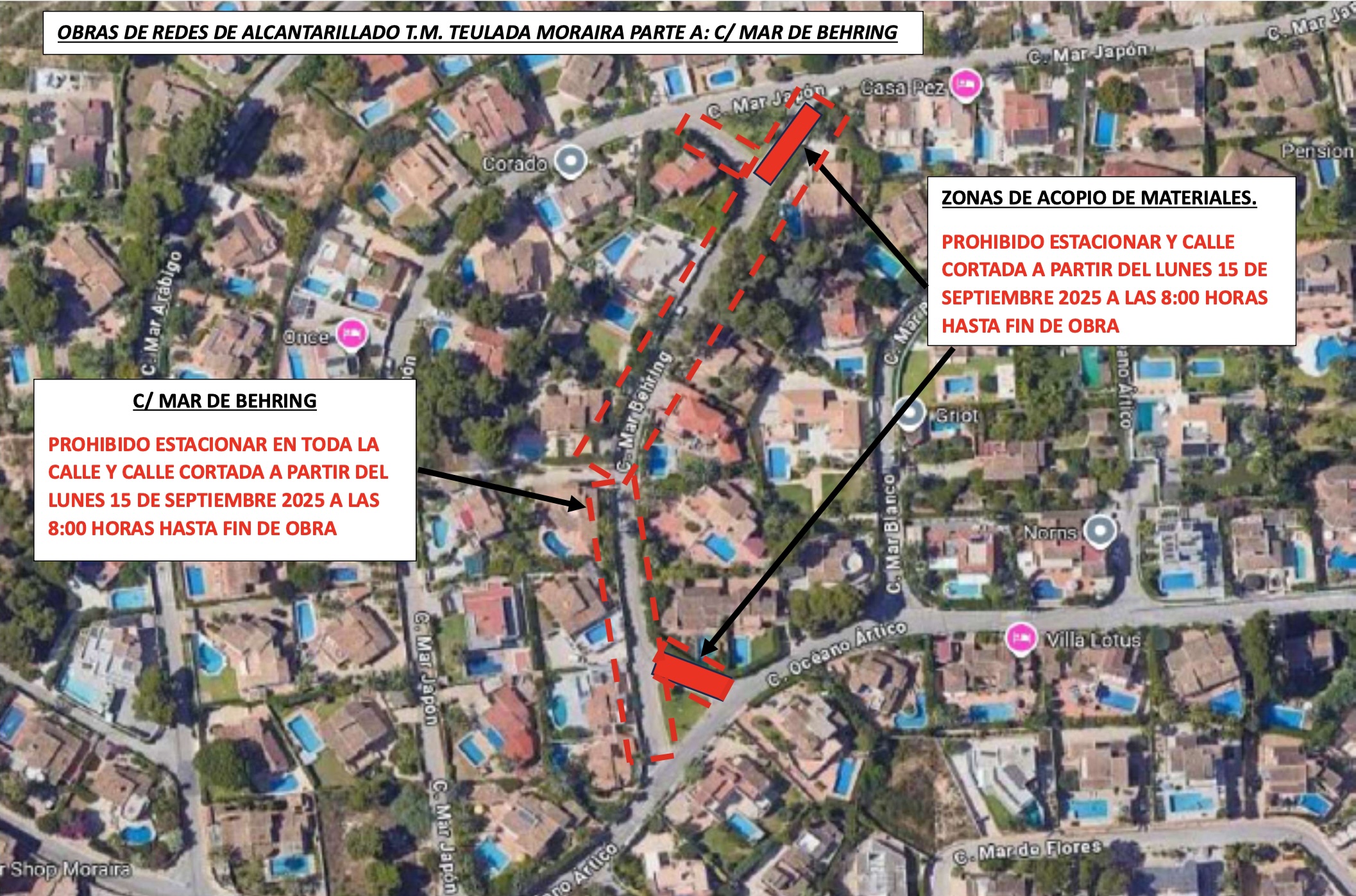 Las obras, que afectarán a las calles Mar de Bering, Mar Blanco, Mar Negro y Mar Jónico, consisten en la renovación de más de 615 metros de colector de aguas residuales. Este proyecto se enmarca en el proceso de actualización de la red de saneamiento de la carretera CV-743, que continúa hasta la CV-737.