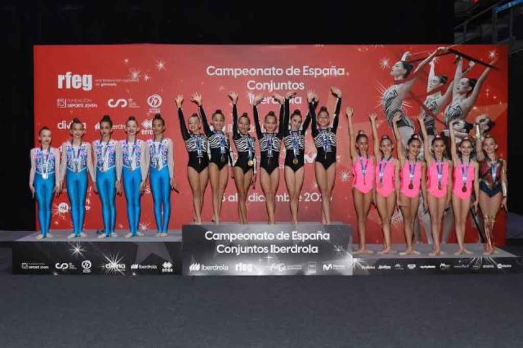 En la segunda jornada firmaron un espectacular ejercicio de aro, que les permitió remontar posiciones hasta proclamarse Subcampeonas de España. En la final del sábado, con cuatro integrantes compitiendo incluso con fiebre, ofrecieron una actuación memorable y se alzaron con el título de Campeonas de España, demostrando talento, unión, disciplina y una admirable fortaleza emocional.